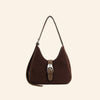 Indulge in elegance with this luxurious Suede Shoulder Bag in chocolate. Made from soft suede, this bag boasts a sophisticated and exclusive tone perfect for any occasion. Its spacious design allows for effortless organization and its sleek, grey color adds a timeless touch to any outfit. Elevate your style with this premium accessory.