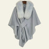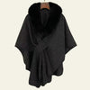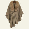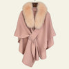 100% Wool Fox Fur Poncho Coat - Burgundy